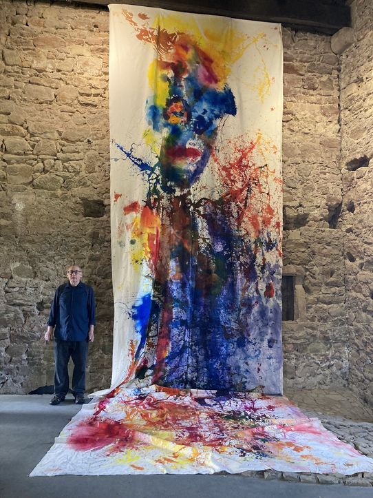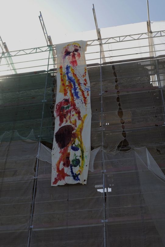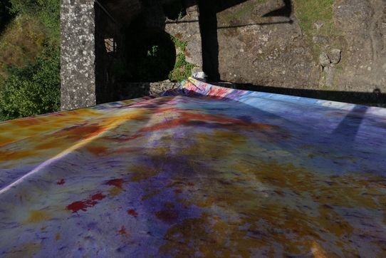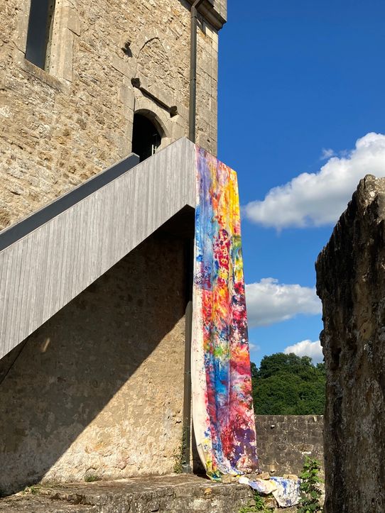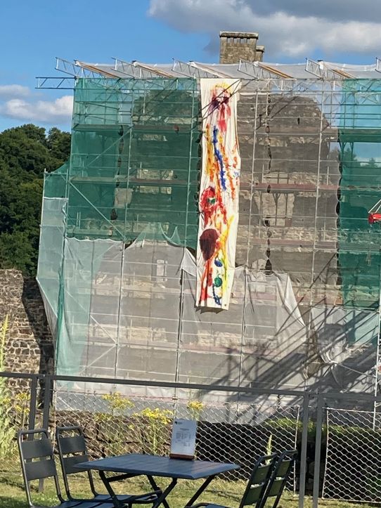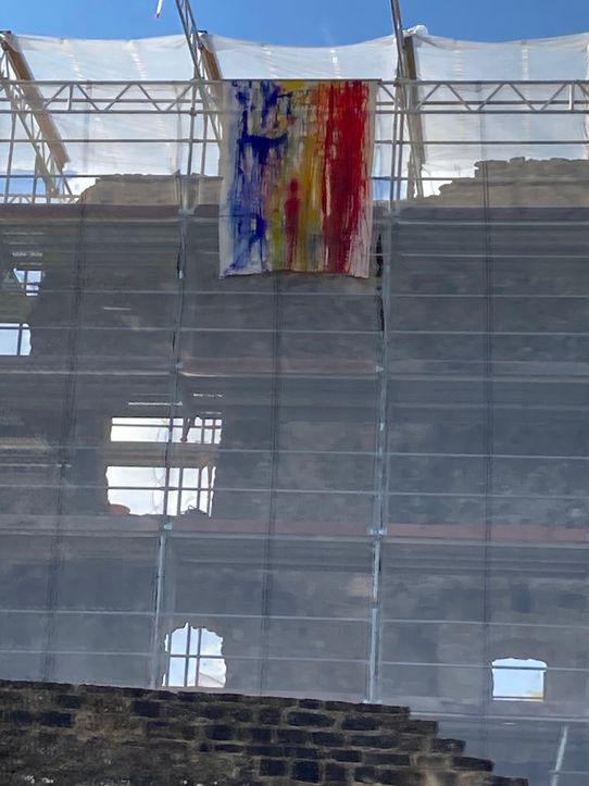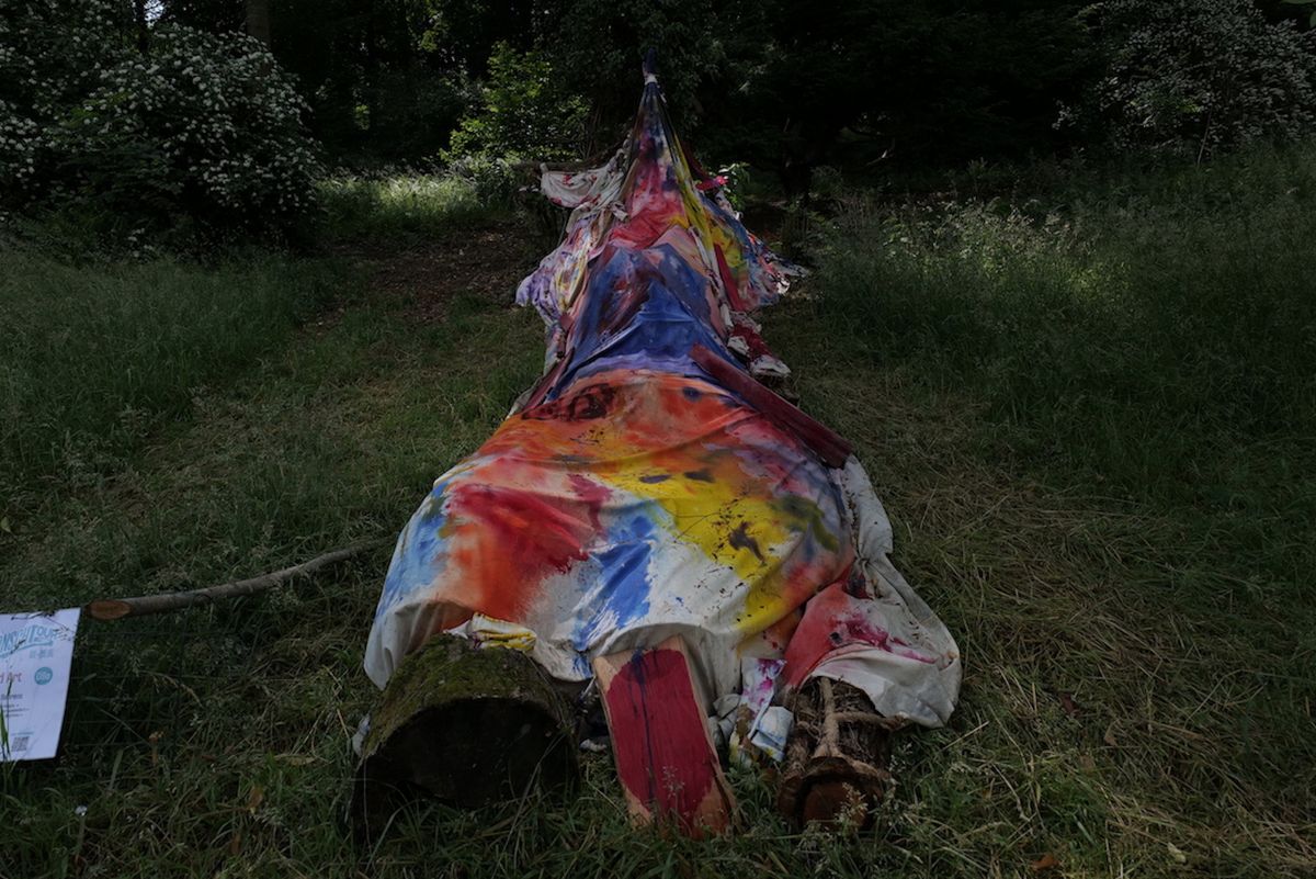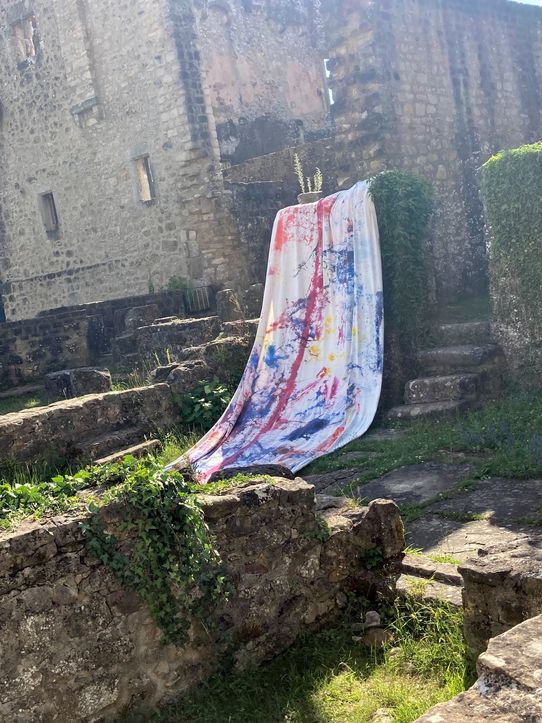 Der Kunstverein bat mich, für das Abschlußfest der Saison 2024 mit großen Tüchern, an denen ich seit Jahren arbeite, eine Deckenverspannung zu installieren, unter der das Fest stattfand.