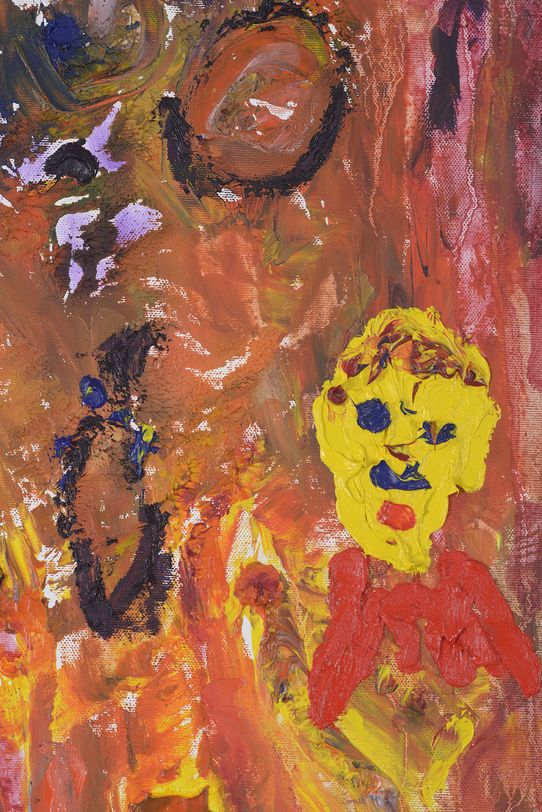 Die mißglückte Besiedlung; Acryl, Öl und Stofftiere auf Leinwand, 1,60 x 1,20 m
